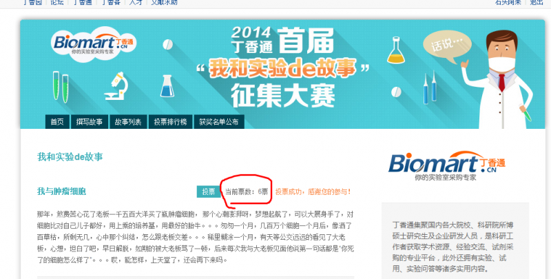 有丁香园账户的麻烦大家帮忙投下票吧,小弟在此拜谢了,这是链接 http://eclub.biomart.cn/story/node/259 |