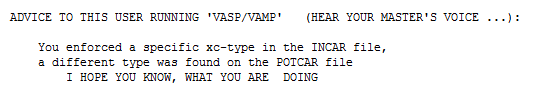运行VASP的分子动力学模拟时,OUTCAR中警示INCAR与POTCAR不一致。在升温阶段,只增加了控温条件:NSW=200 、IBRION=0、POTIM = 0.5、SMASS = -1、TEBEG = 400、TEEND = 500、NBLOCK = 20,其余未改变。OSZICAR中的温度除了调温一步,其余步一直在下降。请问GAA和LEXCH如何设置? |