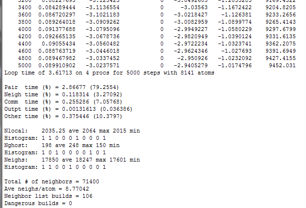 lammps安装完成,最终出现了lmp_openmpi文件,运行一些example的时候可以运行,比如说,
