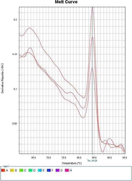 其次看你的溶解曲线,后面Tm85 说明你的条带应该扩出来了,并且重在一起,应该是你的目的片段。但前面那么高的峰,可能是你的引物一开始就是二聚体,后面才慢慢分开扩增片段。你跑个胶看看有没有引物!