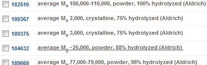大家好,在读水热合成的相关文献时,有时会看到加入了PVA或者PAA。那么这类材料实际上该怎么选择呢?以sigma公司为例,这种材料一般有很多种,主要是以分子量不同为区别,那实际上用水热合成时选择哪种分子量的比较合适?非常感谢您的帮助!!