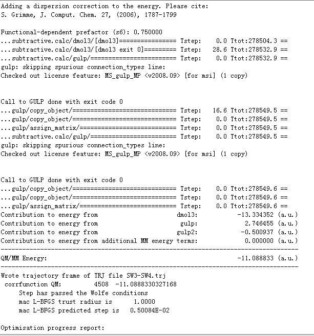 Dmol+gulp,看样子像QMera做的。应该是QM区域和MM区域计算的能量,最终应看QM/MM总能才是,看样子应该是各部分贡献直接求和。对QM/MM了解甚少。