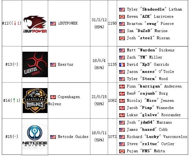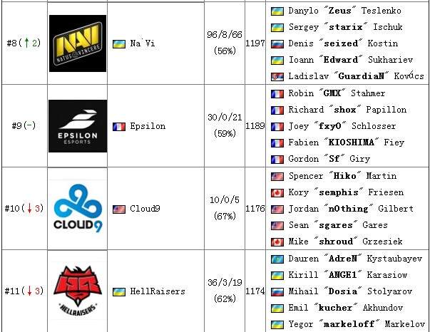 SLTV StarSeries第十赛季线下总决赛刚刚结束,fnatic以强势姿态一路晋级到决赛并击败主场作战的NaVi夺得冠军。Gosugamers也更新了最新一期的战队排行榜。详细榜单如下: 1.jpg 2.jpg 3.jpg 4.jpg |