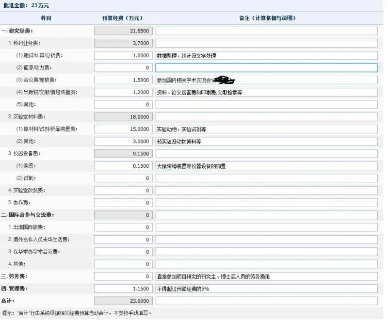自然科学基金项目计划书的经费预算