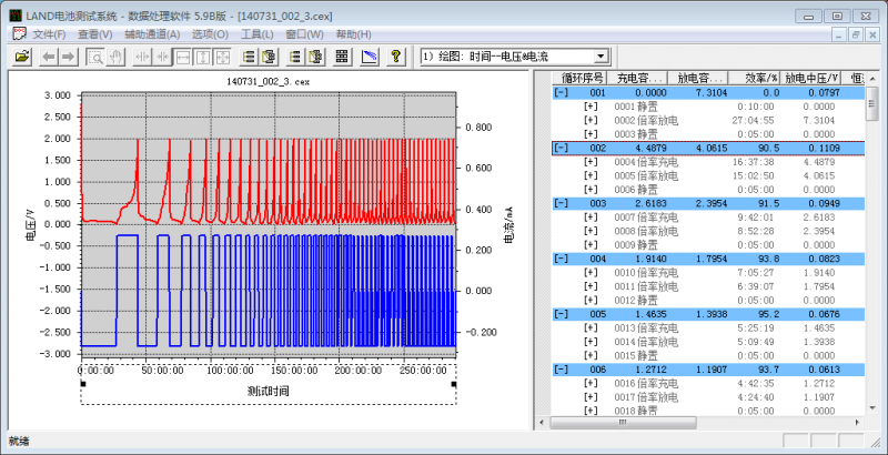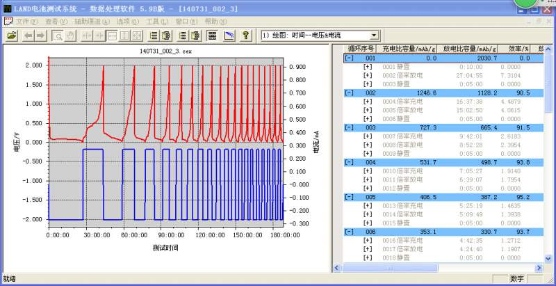 我在实验室电脑上看到的数据是图一,把数据拷到自己电脑就变成图二了,充放电比容量从一两千变成了几,这是怎么回事啊?是我设置的有问题么?还有就是我把数据导出的时候导出来的excel文件里面是空白的,没有数据,谁能给帮帮忙啊,愁死了。 求大神帮助啊!!! 1.jpg 2.png |