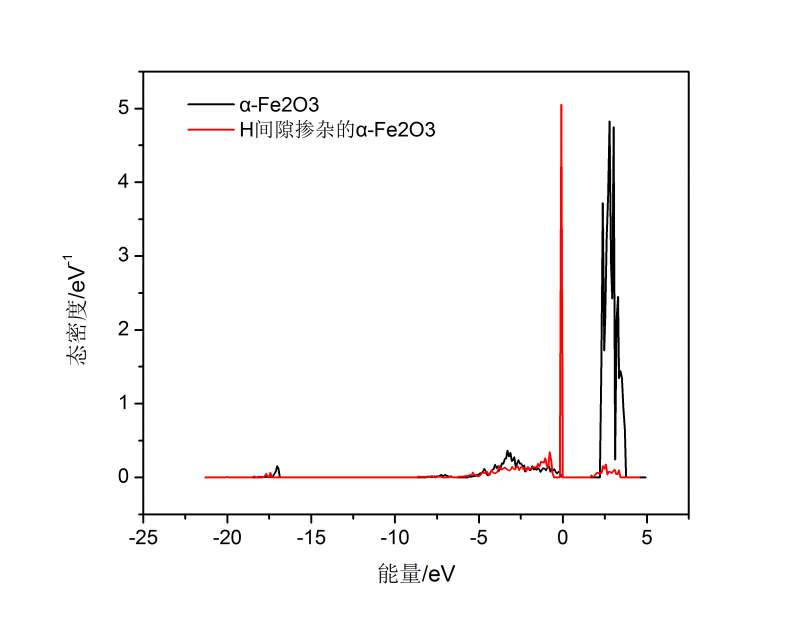 这个图有点问题,明显两个Fe的态密度总和不一样,掺杂后的Fe态密度丢失了很多。 我个人估计是有一部分反键态被推到更高的位置上去了,没画出来。 可以解释为,H和某个O强烈成键并且失去电子,导致某个局部有电子富裕,但O已无空轨道可容纳电子,因此某个Fe的空态可以再次分裂,形成一个占据态,并且剩余的空态会被推到更高能量。但是其他占据态受影响不大,而这个态是反键态里面分裂出来的,它仍然高于所有原来的占据态,因此出现在费米面附近。 由于是Fe2O3,电子难以离域,因此是一个局域态,表现为一窄峰。 |