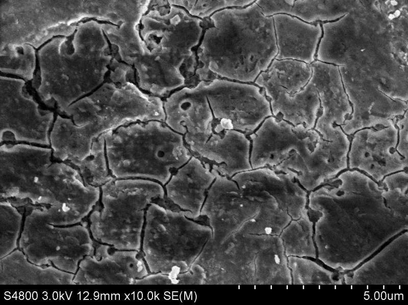 这是我做的铝合金腐蚀在SEM下的图,感觉根本不是腐蚀了,而是反应了,另外说明一下我的这个铝合金材料活性很高与水反应,所以我感觉我这个腐蚀根本不是腐蚀,而是跟水反应了,那一块一块的是反应物,请各位虫友给看看,出点主意,看如何能够腐蚀出真正的晶粒晶界来