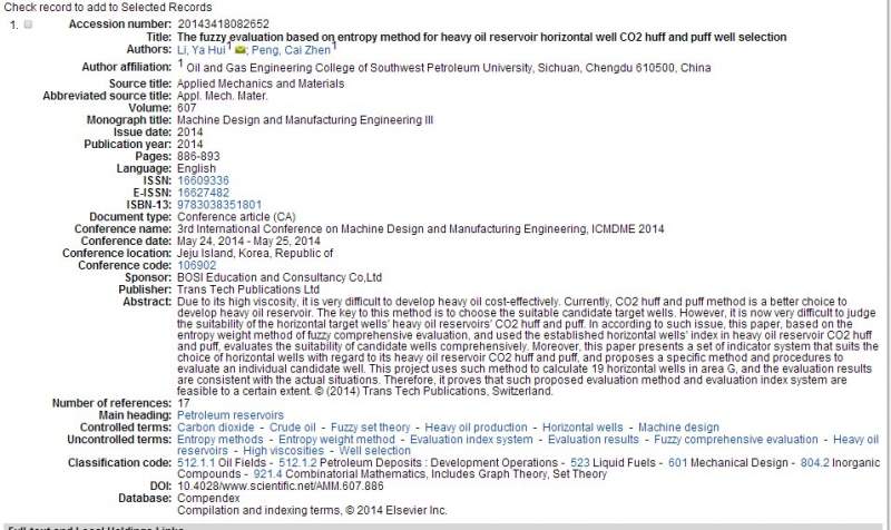 ICMDME2014已经成功EI检索了!AMM-607卷