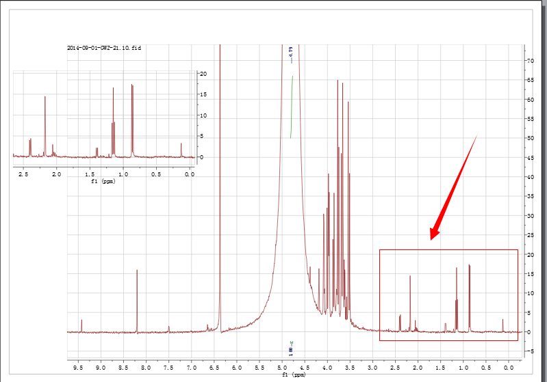 方框中的峰细心解析还是可解的,比如1.1ppm的三重峰可能是乙醇的甲基信号。。。。