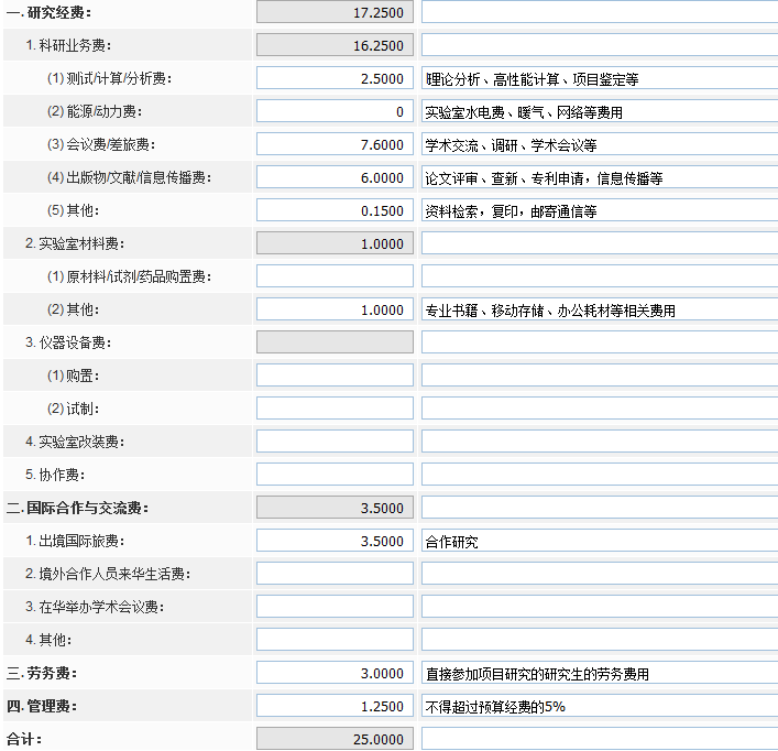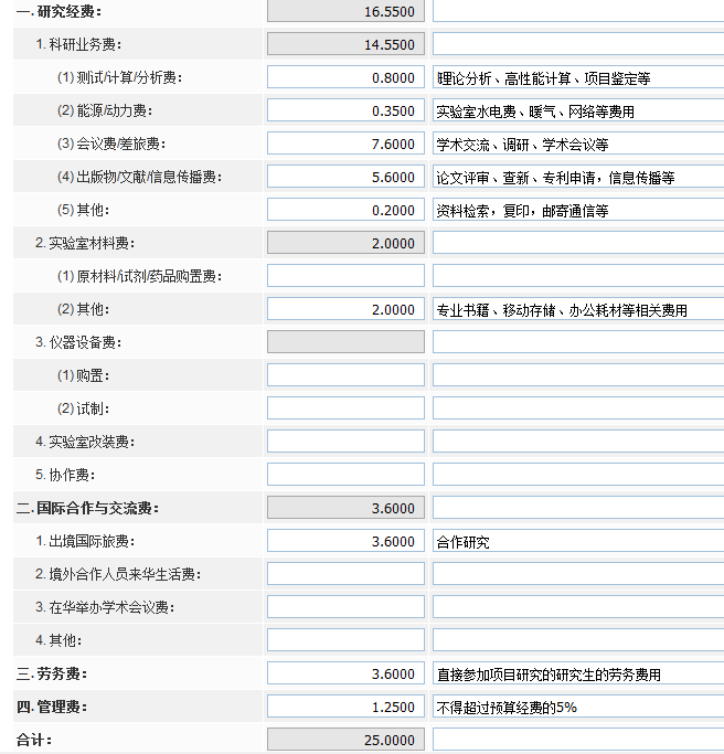 申请25W,批了25万,但感觉之前写的不好报账,所以改动了一下,但专家评审里有明确的“预算资金分配合理”字样。 所以不知道是不是可以这么修改,修改的幅度怎么样才算在合理范围内呢? 之前的预算 改动后的预算 |