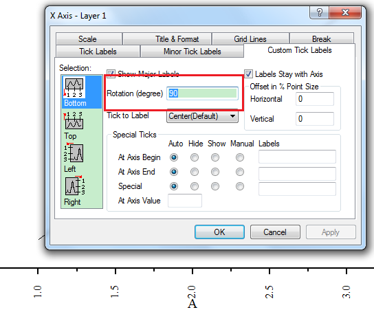 哪位大神知道把Origin8.0的横坐标标题字母朝向改变一下!