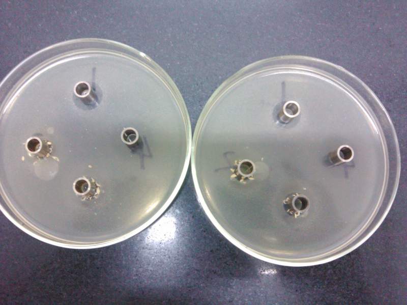 目前在做两种抗菌肽的抑菌试验,周五早上开始培养,培养8h后进行观察,发现其中一个样品(平行样)钢管周围出现了类似气泡的东西, 如下图: 把钢管拿掉后是这个样子: 不知为何会产生这样的气泡,接下来是周末,就放在培养箱里继续培养,待周一早上取出后,气泡消失了, 如下图: 请教大家这个是如何产生的?谢谢。 |