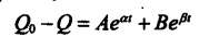 我现在在处理一些数据,需要非线性拟合,希望这些数据能和一个已知模型对上,但是我自己把公式输进去的时候总是显示错误,file cannot coverge,好像是这样一句话。原始的公式可以参见下图,Q为y,t为x,Q0可以认为是100,我在origin中输入的是y=100-(a*exp^(bx)+b*exp^(dx))不知道那里错了,谢谢指点。