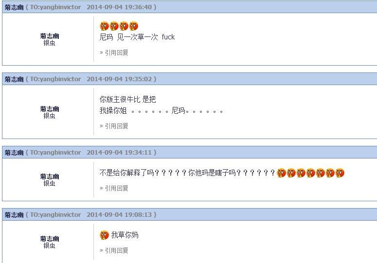 ID 菊志幽 对文献版版主的正常管理不服之后,通过站内信对该版主讽刺谩骂 https://muchong.com/bbs/viewthread.php?tid=7802086 根据版规https://muchong.com/bbs/viewthread.php?tid=6306285 全论坛禁止访问3个月,下不为例。 |
