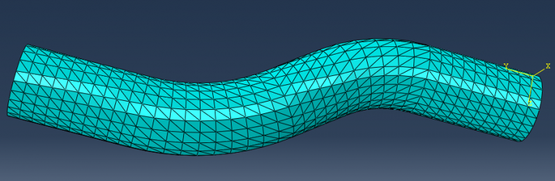 模型两头是圆管,中间用弯管过渡,有点像S型,在Abaqus中画好三角形网格,能导出节点编号和坐标,但是节点在黑线部分编号都很小(如图1所示) 非黑线部分编号从左往右一次增大,这样带来一个问题就是用for语句编程计算节点时遇到黑线时节点编号突然变小,for语句循环不下去了 还有一个问题,就是标题的问题,如何导出三角形单元面的法向量?(如图2所示) 图1 S型管.png 图2.png |