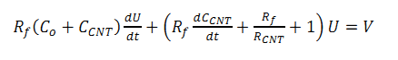 Ccnt=C(u,t) ----> ¡÷Ccnt=dc/du*¡÷u+dc/dt*¡÷t ¿¼ÂǼ«ÏÞÇé¿ö£ºCcnt²»ËæµçѹºÍʱ¼ä±ä»¯£¬ËùÒÔÓÐdc/dt --> 0 ÇÒRcnt -->ÎÞÇî ËùÒÔ£¬·½³ÌΪһ°ãµÄ»·Â·µçѹ·½³Ì¼´¿ÉµÃµ½ ¿¼ÂÇÒ»°ãÇé¿öʱ£º Rcnt¿¼ÂÇÁËCcntËæµçѹ±ä»¯µÄÌØÐÔ Í¨¹ýµçÈݵÄÎ»ÒÆµçÁ÷Ϊd(cu)/dt=cdu/dt+udc/dt ËùÒÔÓÐ µçÈÝ×ÜÎ»ÒÆµçÁ÷Il=d[(Co+Ccnt)u]/dt=dC0/dt+Ccntdu/dt+udCcnt/dt ¿¼ÂÇCcntÓЩÁ÷£¬²¢ÓÃRCNtÀ´½üËÆµÈЧ£¬ËùÒÔ©Á÷ΪU/Rcnt ×îºó¸ù¾Ý·½³Ì V=Rf*Itotal+U,ÕûÀíºÏ²¢£¬¼´µÃÉÏÃæµÄ·½³Ì |