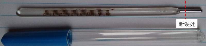 事情经过:新贝的一款消毒器兼有温奶的功能 ,每次温的时候显示屏上是35度,但用手指试水温时发现明显不止35度,于是乎,今天突然脑子发热,想测一下水温。手头上只有这个简易的温度计,刚把它放进去就发现前端断了,由于是前端放在水里,没有发现不溶的珠状物,随后将水倒了,想请教这样的温度计水银在哪个部位?含量大概有多少?若没有发现水银珠子还应该怎么处理是正确的?求高人赐教,感激! 温度计.jpg |