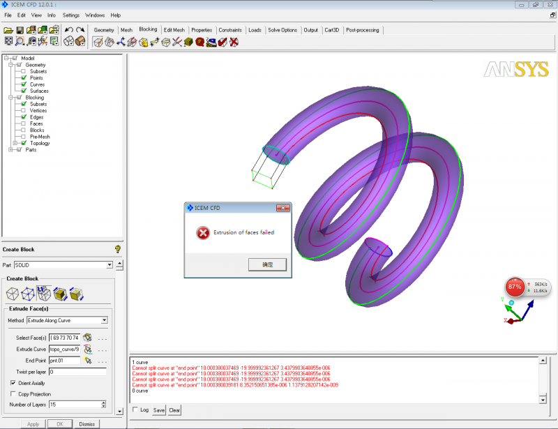 ICEM CFD在利用3D块面沿曲线拉伸时出现问题