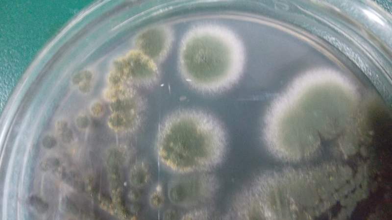 青霉菌,我记得青霉刚开始好像会有白色的菌丝
