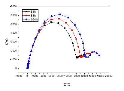 我这个图怎么拟合呢?我用的等效电路如下,拟合出来很不好,谁能帮我拟合一下不胜感激!!!(94,99,104h的也拟合不好,帮忙拟合一下谢谢!我用Zview拟合的)