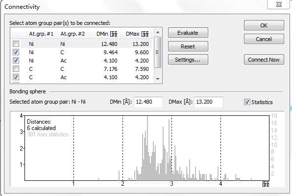 在diamond里 一定键长的原子连起来做拓扑图 设置键长范围时到不了20