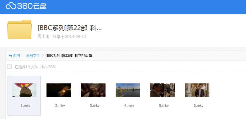 [BBC系列]第22部_科学的故事 360云盘链接:http://yunpan.cn/Q7B4AqspI2UtW 提取码 6f78 RT QQ截图20140911210810.jpg [ Last edited by 阿飞1990乖乖 on 2014-9-11 at 21:10 ] |