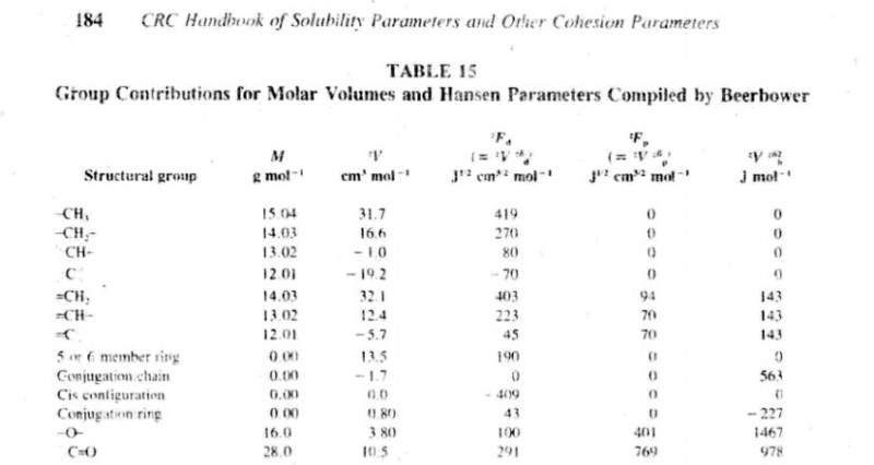 想计算一化合物的溶解度参数,基团的Fd ,Fp, V 选自 图①。