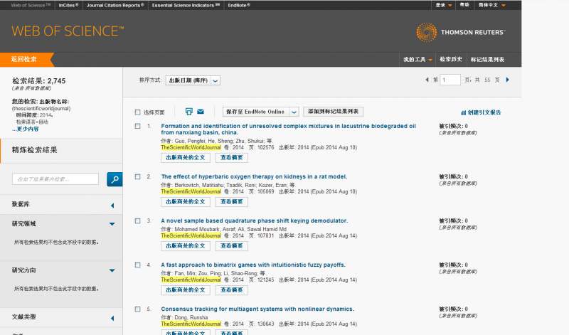 为啥我查thescientificworldjourna被检索到8月份 已有7人参与