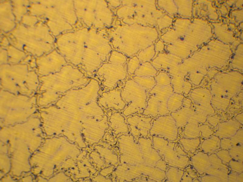 我的镁合金是Mg-Zn-Mn,1.用硝酸酒精腐蚀没有明显的晶界,途中的宽化带不知道是什么,求指导。2.用苦味酸溶液腐蚀时,可以看到晶界,但界内看起来很脏,寻求怎么才能得到光亮的金相效果。 做过Mg-Zn-Mn的虫友们介绍有效的腐蚀剂,谢谢! DSCN9721.JPG DSCN9883.JPG |
