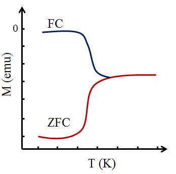 小弟刚刚接触超导,老板让我查关于直流磁化率ZFC 和FC的测量问题。常见的第二类超导体ZFC和FC的形状就不说了,老板说有些情况下FC曲线会明显的向上弯曲,如图(此图为我自己画的示意图),即,FC与ZFC呈相互翻转的形状。不知各位大侠是否在文献上见过类似的图,或是知道哪些体系能有类似的磁化率的性质,以及为什么。求文献,求解释。