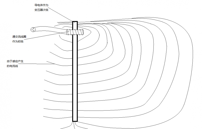 n扎环形线圈套在一根金属导体上作为初级,金属导体作为只有1扎的次级,导体放在导电液体中,模型见图示。当线圈中加载交流电时,会在线圈上下的金属导体中产生电势差,并有漏电流产生。怎么用ansys建立模型仿真出,在金属导体中指定点的漏出电流的大小和电动势大小? 感应电流.png |