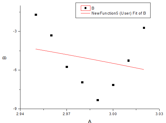 刚刚在用origin8.0非线性拟合,一直出错,看那个拟合出来的图就感觉不对,请高手帮忙 X Y 2.95 -1.71 2.96 -3.30 2.97 -5.74 2.98 -6.94 2.99 -8.31 3.00 -7.14 3.01 -5.26 3.02 -2.71 y=k*(x-r)^2 参数为k和r origin-tu.png |