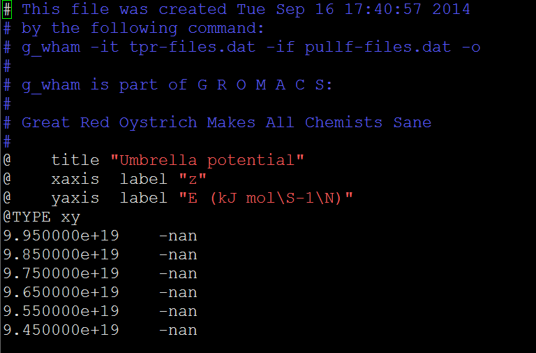 gromacs tutorial 教程Umbrella Sampling算PMF,g_wham不能输出数据