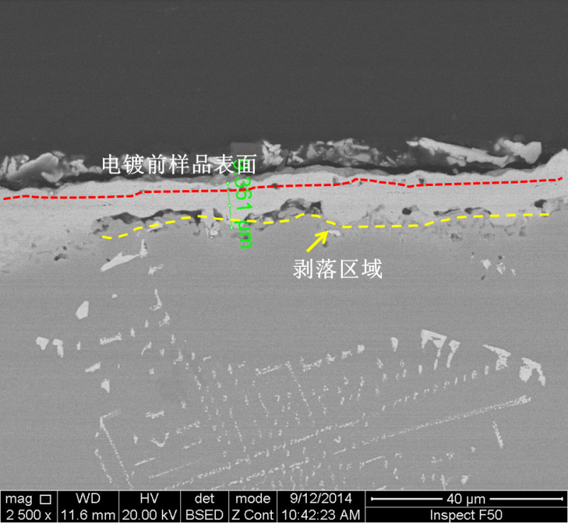 在样品表面电镀一层金属,电镀时,镀液中存在大量析氢反应,然后在900度高温下直接退火,在镀层下面出现了裂纹,这种涂层剥落,是由于结合力不好,还是氢脆现象。或者是其他情况。谢谢 2_005.jpg 图片1.png |