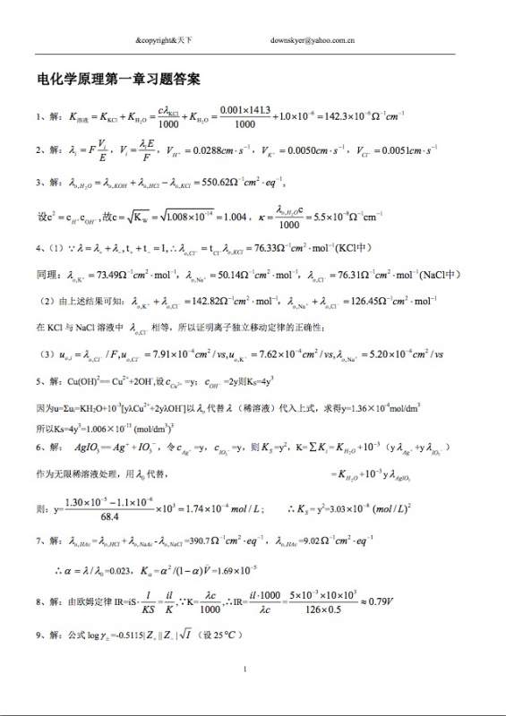 【课后答案】电化学原理 (李狄 著)课后1-7章习题参考答案