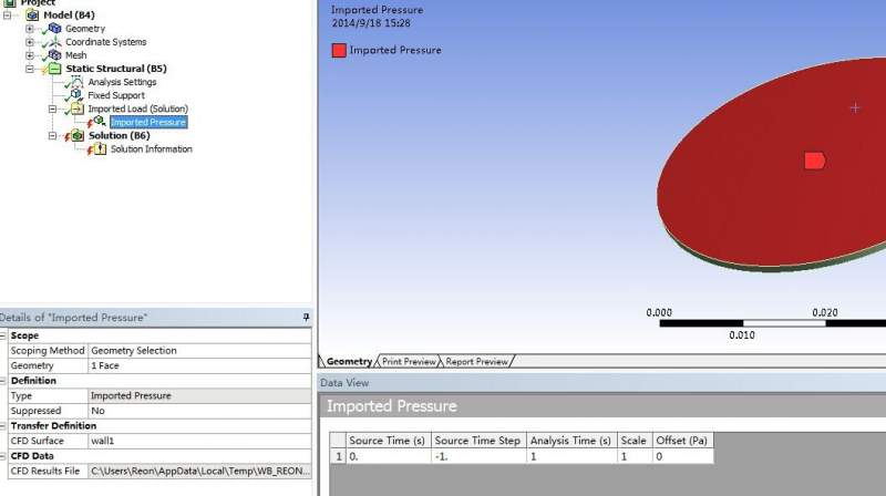 做流固耦合分析,流体在一个面上的力加载到膜片上,流体部分的那个面type定义为wall,加载力时提示数据不可用,求大神指导