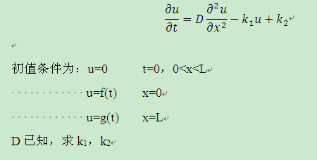 本人初学matlab,扩散型偏微分方程和具体的条件如下,不知道应该用怎样的思路求解,急需高手指点。原本化成显式的差分格式,可是我的目的是求解方程中的系数k1和k2,而不是求解u在时间和空间的解。拜托各位了! 11.png |