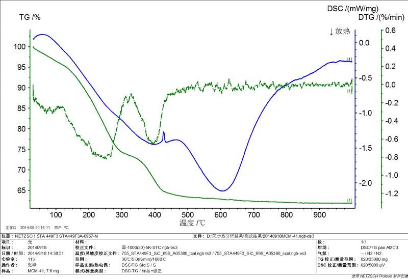 我做的是介孔材料 AL-MCM-41 模板剂是CTAB 做的热重图 见附图 求帮忙分析一下 非常急!!!!有重谢