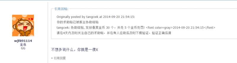ID wjf891114 对文献版版主的正常管理不服之后,通过站内信对该版主讽刺谩骂 根据版规https://muchong.com/bbs/viewthread.php?tid=6306285 |