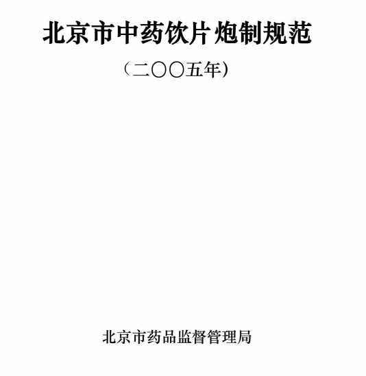 北京市中药饮片炮制规范现行版本