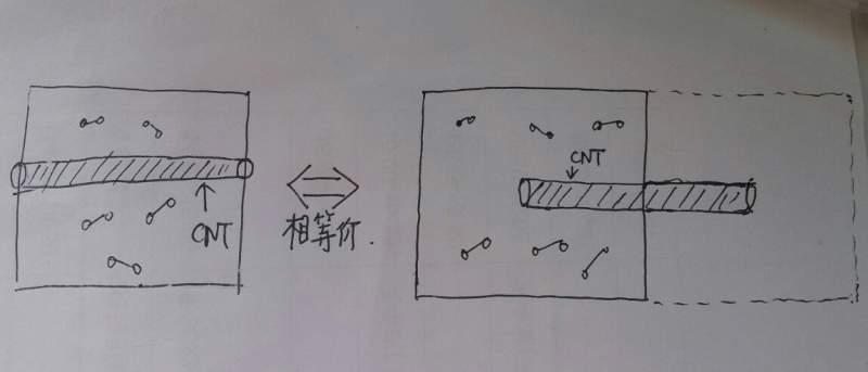 下图是pbc的解释,以碳管为例。做图和右图是完全等价的,只是右图的碳管平移了一下,有一部分到了镜像盒子中。