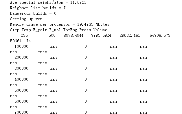 Lammps运行结果问题!无数据,出现nan!