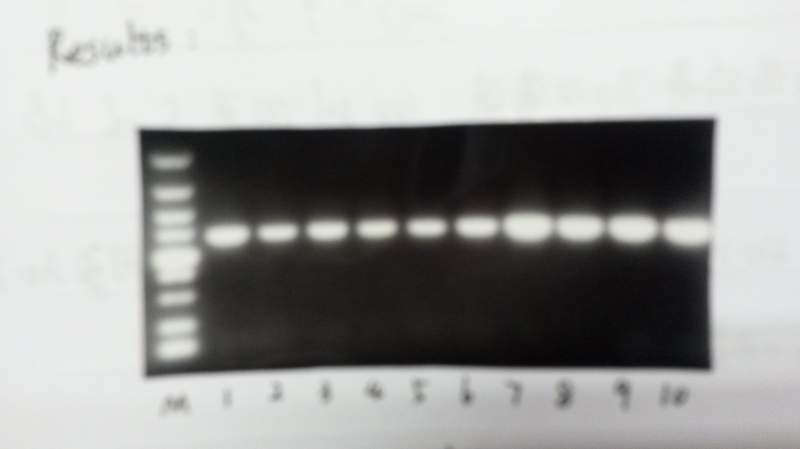 请问各位大牛,在菌液PCR中,我的空质粒和重组质粒用同一对引物P出了差不多大小的片段,这样正常吗?这对引物可以作为重组质粒验证的引物吗?(PS.电泳图前六个为重组质粒,后面四个为空质粒。