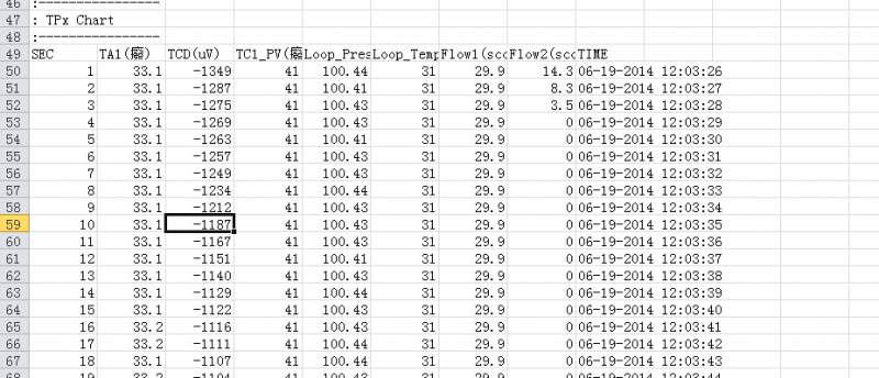 不同仪器的原始数据格式不尽相同,一般是温度对TCD信号作图。我猜你的这个应该是第二第三列吧。