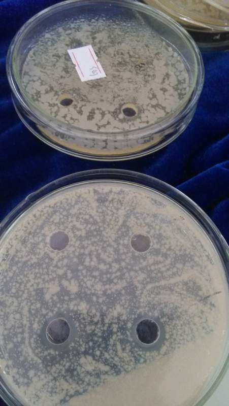 抑菌试验 供试菌为草生欧文式杆菌 长得很奇怪 一朵一朵的