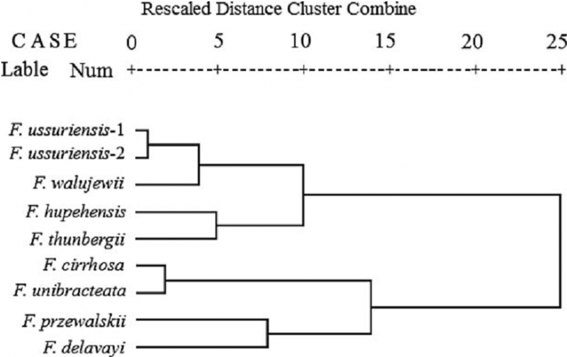各位大神,请教一个关于系统聚类分析的问题:利用SPSS进行系统聚类分析时,不管采用哪种聚类方法,生成的树状图的横坐标都是0-25(距离),如图1、图2。但参考许多文献给出的树状图的横坐标都是100-0(相似系数),如图3、图4。请问如何让横坐标变为相似系数?谢谢!