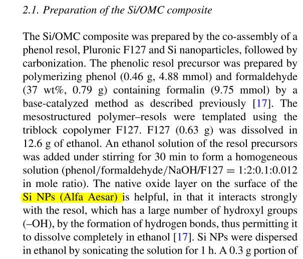 最近看赵东元老师的文献有一篇里面是Si NPs,猜测应该是硅纳米颗粒,但是由于资历太浅,刚开始学习,请大神不吝赐教!