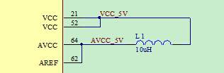 如图1为ATmega128的一部分,图2,图3,图4为其旁边的电路图,我的疑惑是,图2、图3、图4的电路起到什么作用(就是VCC、AVCC接电容再接地)? 另外,之所以在图1旁边再画图2与图3,是考虑到直接画在图1 ATmega128的21、52引脚与64引脚上显得电路交叉太多不易识图才画在旁边的吗? 图1 图2 图3 图4 |