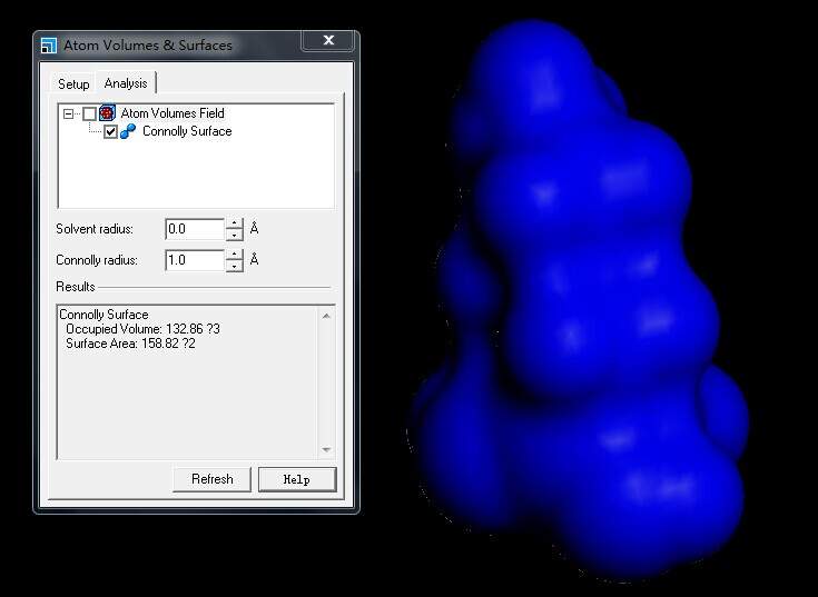 您好,我想问一下这个软件能拟合成一个分子的范德华表面积和体积吗
