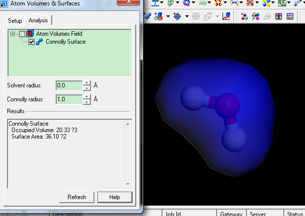 MS--Tools--Atom Volumes & Surfaces,试试看行不。附图是水分子的参考结果。